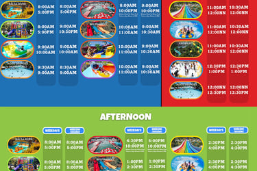 Get the latest slide schedule to plan your thrilling water adventures at Splash Island.