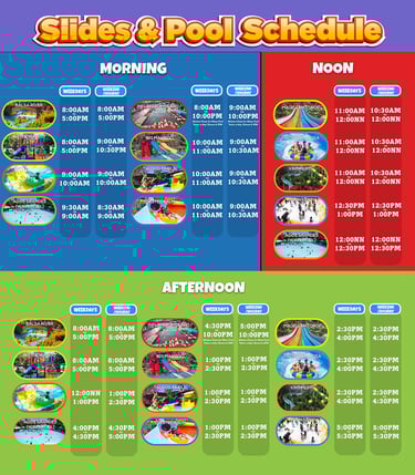 Experience a bubbly summer with easy access to park MAP and SLIDE schedules.